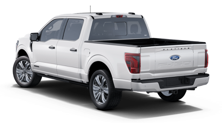 EQUIPMENT GROUP 703A PLUS -inc: Satin Single Exhaust, Engine: 3.5L PowerBoost Full-Hybrid V6, Pro Power Onboard 7.2KW and removes 36 gallon fuel tank, GVWR: 7,400 lbs Payload Package, Electronic Locking w/3.73 Axle Ratio, Transmission: Hybrid Electronic 10-Speed Automatic, Wheels: 22" Premium Painted w/Chrome Inserts, Tires: 22", Platinum Plus Interior Theme, Radio: B&O Unleashed Sound System by Bang & Olufsen, HD Radio and 14 speakers including subwoofer, Tray Style Floor Liner, Wheel Well Liner, Platinum Plus Exterior Theme, Leather-Wrapped Instrument Panel, Illuminated Scuff Plate, Twin Panel Moonroof, Heads-Up Display, Platinum Plus Experience, premium maintenance plan, elite welcome call, welcome package and tribute item, accessories discount (90 day window), FordPass rewards upgrade tier and 1:1 texting w/Ford truck expert, Platinum Hood Lettering, ENGINE: 3.5L POWERBOOST FULL-HYBRID V6 -inc: Pro Power Onboard 7.2KW and removes 36 gallon fuel tank, GVWR: 7,400 lbs Payload Package, Electronic Locking w/3.73 Axle Ratio , STAR WHITE METALLIC TRI-COAT, SMOKED TRUFFLE, FULL QUILTED LEATHER BUCKET SEATS -inc: unique multicontour w/Active Motion, 4-way adjustable driver/passenger headrests, heated and ventilated 10-way power driver and passenger w/power lumbar, memory driver's seat, flow-through console and floor shifter, FRONT LICENSE PLATE BRACKET -inc: Standard in states where required by law, optional to all others, ELECTRONIC LOCKING W/3.73 AXLE RATIO, Wheels: 20" Painted Gloss Ebony Black, Voice Activated Dual Zone Front Automatic Air Conditioning, Unique Multi-Contour Leather Bucket Seats -inc: Active Motion, 4-way adjustable driver/passenger headrests, heated and ventilated 10-way power driver and passenger w/power lumbar, memory driver's seat, flow-through console and floor shifter, Trip Computer.