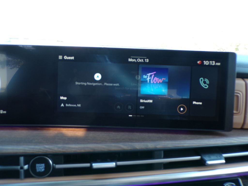 - Radio: AM/FM/HD Bose Premium Audio System -inc: 12 speakers including subwoofer, external amplifier, 12.3" wide touchscreen, Apple CarPlay and Android Auto, Bluetooth® hands-free w/wireless audio streaming, dynamic voice recognition, USB connectivity, SiriusXM, Blue Link+ connected car system, over-the-air updating capability, navigation system including traffic flow w/incident data via HD Radio (HERE) and rear seat quiet mode