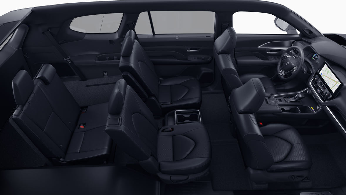 - 7-passenger seating with second-row fold-down captain's chairs and fold-down inboard armrests, adjustable headrests and two cup holders mounted on the floor; and 60/40 split, fold-down third-row seats with sliding headrests and recline function