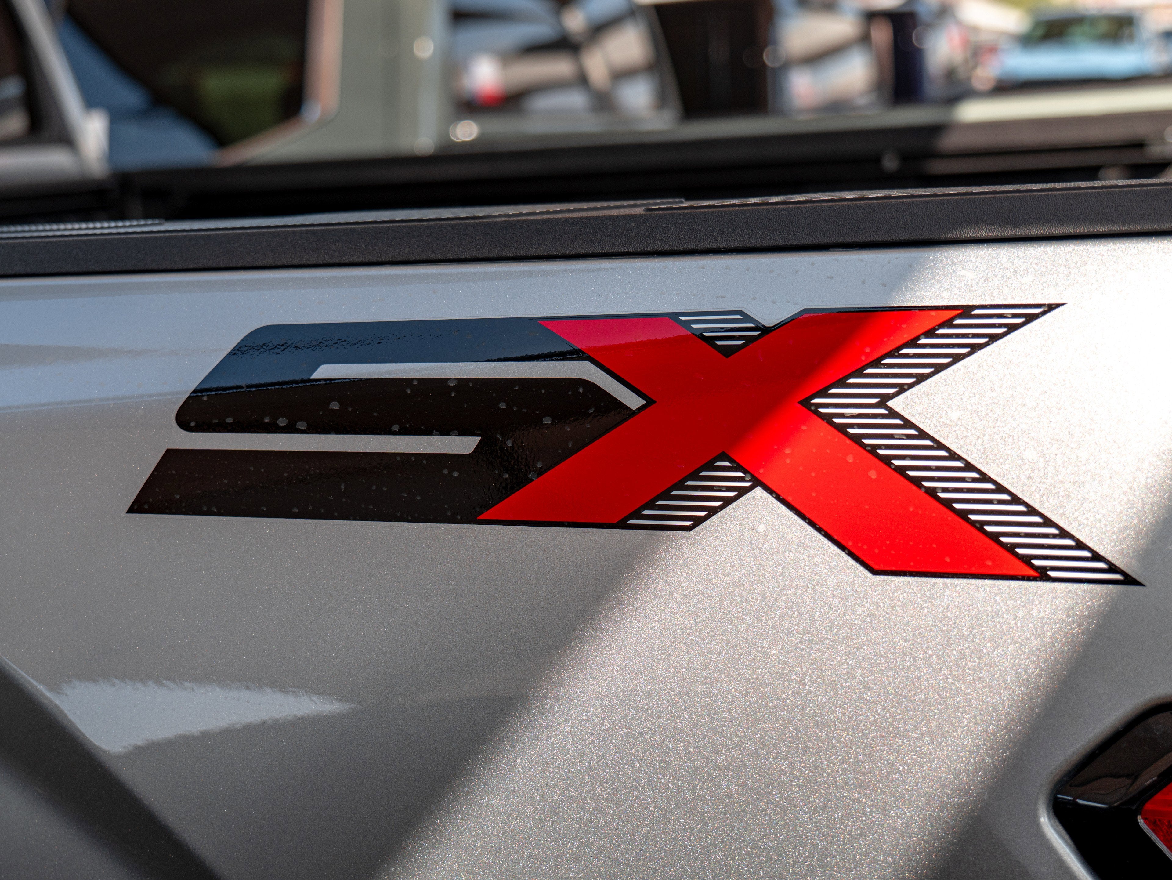 - Black horizontal-bar grille with color-keyed surround