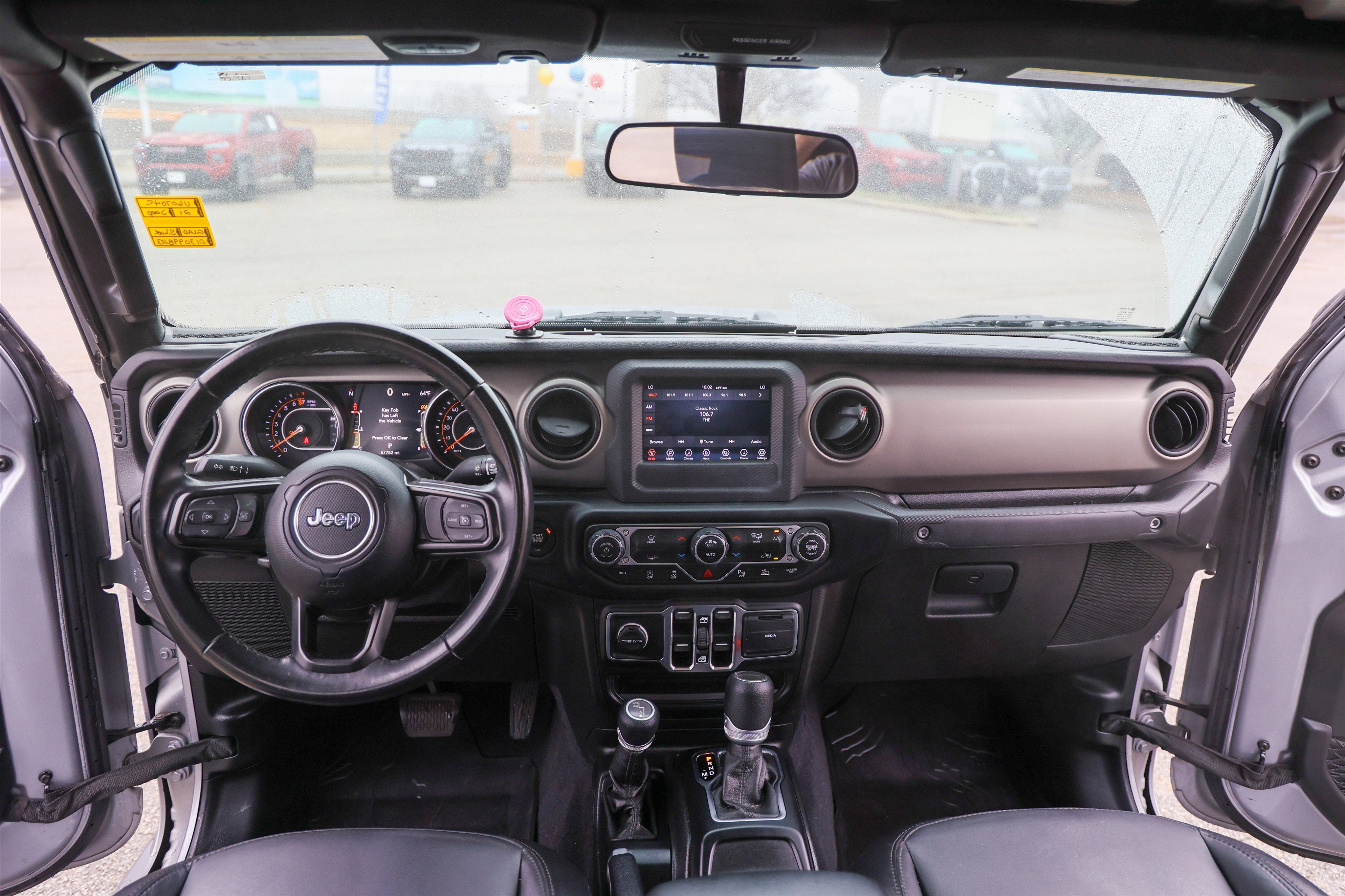 - QUICK ORDER PACKAGE 24J TEXAS TRAIL -inc: Engine: 3.6L V6 24V VVT UPG I w/ESS Transmission: 8-Speed Automatic (850RE) Convenience Group Universal Garage Door Opener Speed Sensitive Power Locks Leather Wrapped Steering Wheel Molded in Color Bumper w/Accent Color Trailer Hitch Zoom Class IV Hitch Receiver Heavy Duty Engine Cooling 240 Amp Alternator Body Color Fender Flares (2-Piece) Front 1-Touch Down Power Windows Security Alarm Rear Armrest w/Cupholder Seat Freedom Panel Storage Bag Rear Window Defroster Rear Sliding Window No Soft Top Texas Trail Automatic Headlamps Google Android Auto SiriusXM Radio Service For More Info Call 800-643-2112 GPS Antenna Input USB Host Flip Cluster 7.0 TFT Color Display Integrated Center Stack Radio 7.0 Touch Screen Display Air Conditioning w/Auto Temp Control Integrated Voice Command w/Bluetooth® Apple CarPlay 97 mph Maximum Speed Calibration Power Heated Mirrors Daytime Running Lamp System Power Tailgate Lock Bri