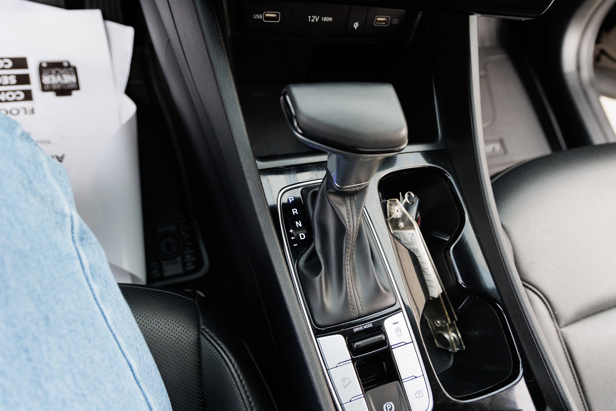 - Gearshifter material Leather and metal-look gear shifter material